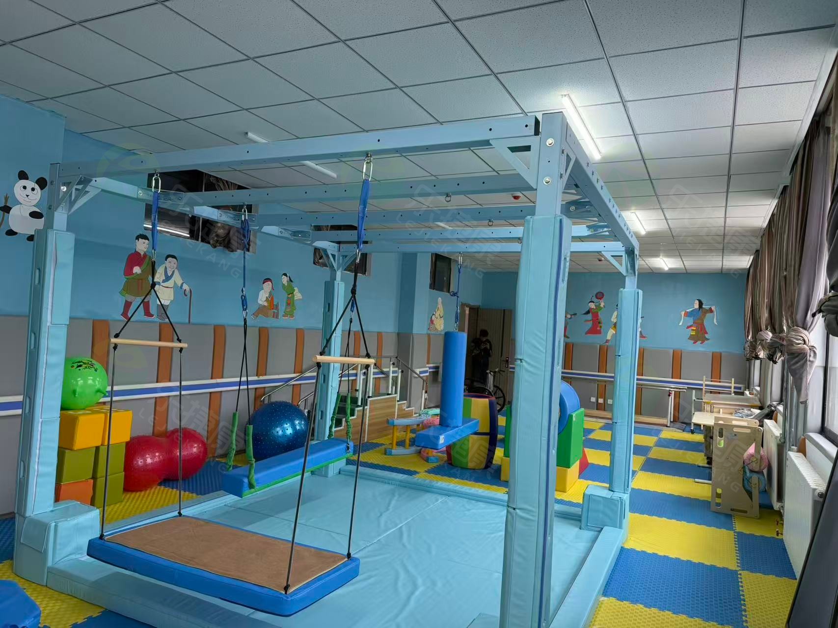 感觉统合训练室以定制化多元秋千、攀爬架、滚筒、球池、大龙球等器材和上肢引导式康复训练器智能设备,有效改善肢体协调能力与运动控制水平,强化协调,提升身体控制能力。